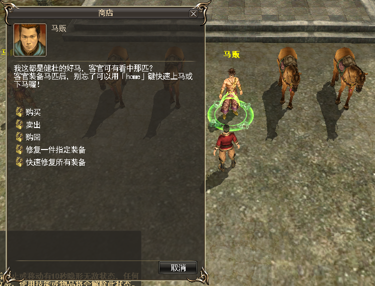 当您的角色级别达到20级,您便可以在城市的NPC【马贩】处,购买坐骑。