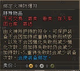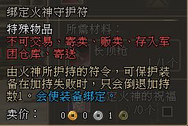 持或者重铸失败的装备不被损毁,同时强化失败也不会减少强化次数;火神守护符可保护装备在加持失败时只